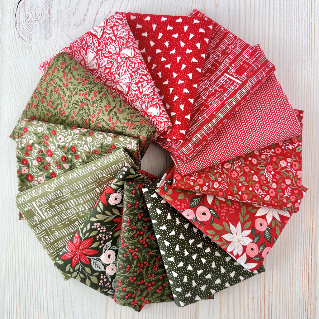 Twelve festive prints from the Berry & Pine collection by Lella Boutique for Moda. Available in fat quarter and half yard bundles. Select option from drop down menu. 100% cotton.